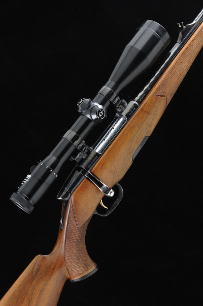 MANNLICHER A .243 "LUXUS" MODEL BOLT-ACTION SPORTING RIFLE, NO. 210788 23 1/2-inch barrel with ramp fore sight and adjustable rear sight, the receiver mounted with a Zeiss Diavari-ZA 2.5-10x52 telescopic sight, in quick detachable swing mounts, bolt with tang safety, detachable box magazine, set trigger, the figured half length stock with pistol grip and rubber recoil pad, sling swivels, 14-inch pull, 8lb. 10oz., Austrian nitro proof S1 |