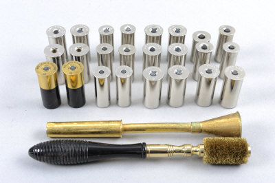 approximately 26, of various calibres, some named, including, Lancaster, Purdey, etc; together with a chamber brush; and brass funnel (28)