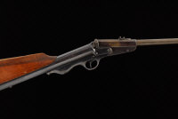 A SCARCE .177 COX'S PATENT BRITANNIA AIR RIFLE, NO. 1100 21-inch barrel with adjustable rear sight, breech with pull back catch, plain frame, air cylinder, trigger guard, etc, walnut cheek piece, 14-inch pull, 6lb. 12oz., refinished overall |