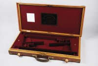 FREDERICK BEESLEY A BRASSBOUND OAK AND LEATHER DOUBLE GUN CASE with compartment for 28-inch barrels |