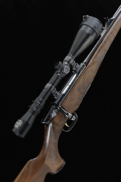 STEYR MANNLICHER A .308 "LUXUS" MODEL BOLT-ACTION SPORTING RIFLE, NO. 182169 22 1/2-inch barrel fitted with a muzzle brake, the receiver mounted with a Pecar 4-10x52 telescopic sight, bolt with side safety, detachable box magazine, set trigger, the half length stock with pistol grip, cheekpiece and rubber recoil pad, 8lb. 10oz., Austrian nitro proof S1 |