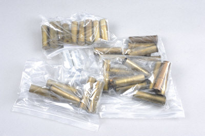 comprising: seven rnds Police gun ammunition; fifteen primed cases; a further ten primed cases; and three alloy experimental cases