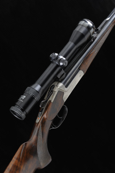 HEYM A 7X65R BOXLOCK NON-EJECTOR DOUBLE-BARREL RIFLE, NO. 90083 23 1/2-inch barrels with ramp fore sight, machined short raised rib, mounted with a Zeiss Diavari-ZM 1.5-6x42 telescopic sight in quick detachable claw mounts, the bolstered frame and top lever with scroll engraving, 14 1/2--inch well figured stock with pistol grip, cheekpiece and recoil pad, 8lb. 14oz., nitro proof S1 |