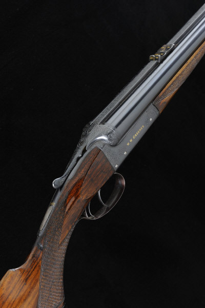 W. W. GREENER A .500 BOXLOCK NON-EJECTOR SPORTING RIFLE, NO. 52061 27-inch barrels with stippled rib, rear sight with folding leaves, crossbolt extension, the frame and top lever with scroll engraving, the maker's name signed in gold, 14 1/2-inch figured stock with pistol grip and steel butt plate, sling eyes, 9lb. 10oz., black powder proof S1 |
