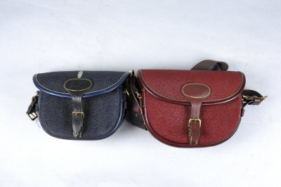 TWO STINGRAY LEATHER CARTRIDGE BAGS leather and canvas straps, for about 100 and 150 cases respectively |
