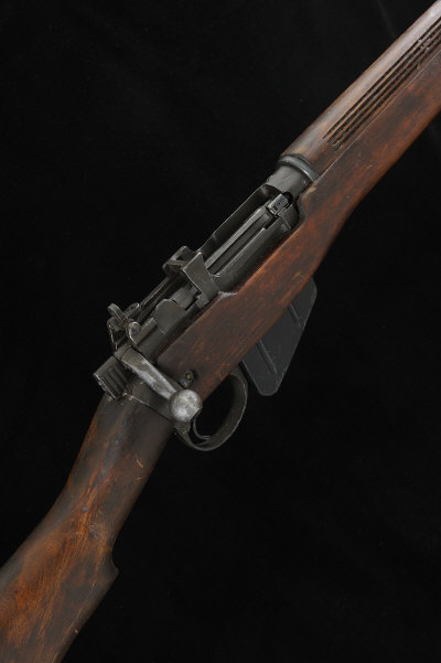 STEVENS A .303 NO.4 MK 1* BOLT-ACTION SERVICE RIFLE, NO. 33C8749 25-inch two-groove barrel with ramp fore sight, folding battle sights, detachable box magazine, butt socket dated '1942', full length stock with hand guards and brass butt plate, 13-inch pull, 9lb. 2oz., nitro proof S1 |