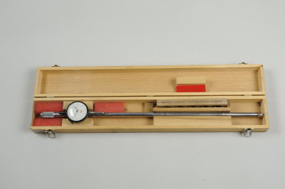EGERTON-CHUBB A 12-16-20 MULTI GAUGE INTERNAL BORE MICROMETER in its wooden case with sizing rings, dial requires lubrication and adjustment |