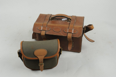 A LEATHER CARTRIDGE CASE for about 300 cartridges; together with a canvas cartridge bag, with leather trim (2) |