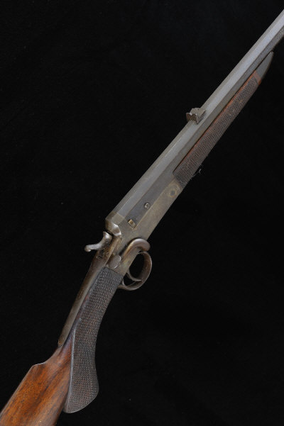 GEO. HINTON A .250 HAMMER ROOK RIFLE 27-inch octagonal barrel with machined top surface, rear sight with folding leaves, the plain frame with central hammer and side lever and retaining some original hardening colour, 14 1/4-inch figured stock with pistol grip and steel butt plate, 5lb. 5oz., black powder proof S1 |