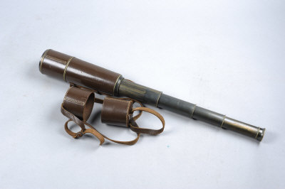 BROADHURST CLARKSON & CO. LTD A SCARCE LARGE FIVE-DRAWER STALKING TELESCOPE the leather-covered body with sliding shade and eye-piece covers, retaining much of its original blacked finish |