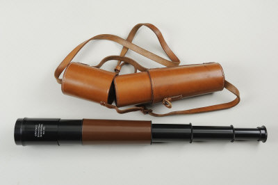 GRAY & CO. A THREE-DRAWER STALKER'S TELESCOPE, NO. 1309 the black alloy body with sliding sun shade, in its leather scope tube |