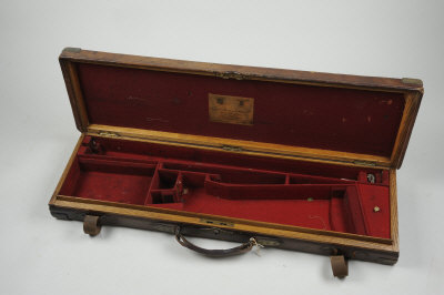 A BRASSBOUND OAK AND LEATHER GUN CASE