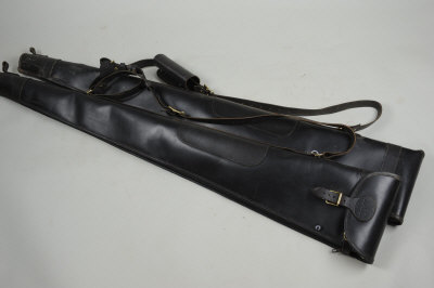 CROOTS A PAIR OF LEATHER FLEECE-LINED GUN SLIPS with full length zips and straps to be used as singles or a pair |