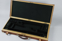 A BRASSBOUND OAK AND LEATHER DOUBLE GUN CASE