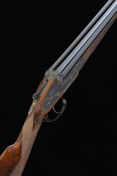 "THE PHOENIX GUN" A MAGNIFICENT MALCOLM APPLEBY-ENGRAVED 12-BORE SELF-OPENING SIDELOCK EJECTOR GUN, NO. 7420 28-inch chopper-lump barrels with 2 3/4-inch chambers, about full choke borings, the tubes signed beneath the fore-end, 'M. Appleby, Engraver' and 'M Lingard, Gunmaker', the breeches and rib with fine feather details, the frame and locks engraved in typical Appleby style with flowing plumage, talons and highly detailed stylised themes around the mythical phoenix, the trigger plate with golden flames, the action base with beak and eyes, the fences carved in a similar manner, the safety catch with further golden flame detail, gold lined cocking indicators, 14 3/4-inch highly figured stock, 6lb. 10oz., nitro proof S2 The gun retains all of its original finish and appears virtually unused.