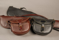 A BLACK LEATHER CARTRIDGE BAG to contain approximately 100 cartridges, with matching black leather gun slip; together with a similar chestnut brown leather cartridge bag and matching gun slip (4) |