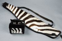 A LARGE SIZE ZEBRA SKIN AND LEATHER RIFLE SLIP suitable for a rifle with sound moderator; together with its matching cartridge carry-all, for about 200 cases |
