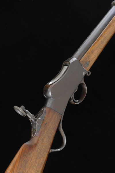 26-inch barrel with folding ladder sight, plain receiver with folding tang sight, 14 1/2-inch figured stock, 6lb. 10oz., nitro proof