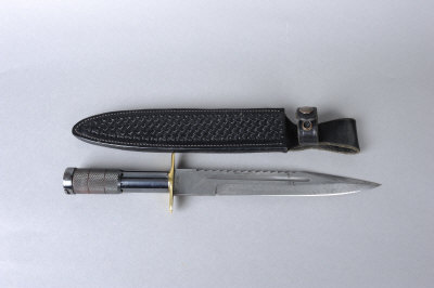 J. RIGBY & CO. A BALDOCK PATTERN SPEAR KNIFE 9 1/2-inch saw back blade with impressed Rigby trademark, brass crosspiece, the hollow handle with gnurled grip |