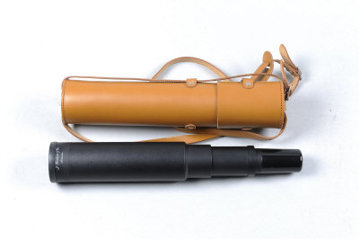 J. GRAHAM & CO., INVERNESS A MODERN STALKING TELESCOPE alloy single drawer body with adjustable eye-piece and dust covers, in its leather tube with strap |