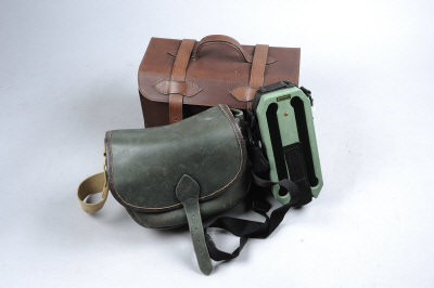 A LEATHER CARTRIDGE BAG loader's pattern; together with a leather cartridge carrier; and a Loadmaster rapid load device (3) |
