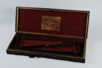 A BRASSBOUND OAK AND LEATHER DOUBLE GUN CASE