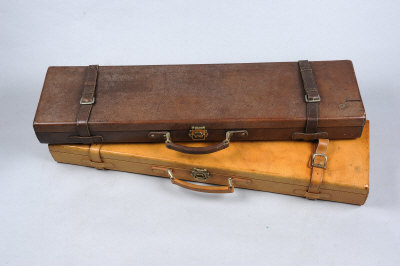 A MODERN LIGHTWEIGHT LEATHER GUN CASE with compartment suitable for 30-inch barrels; together with another similar (2) |