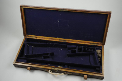 A BRASSBOUND OAK AND LEATHER DOUBLE GUN CASE