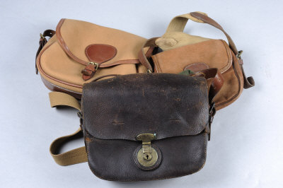 A QUANTITY OF SHOOTING ACCESSORIES including: 2 canvas cartridge bags, a leather W. J. Jeffery "The Victoria" stalking bag, 4 cartridge belts, rifle slings, etc |