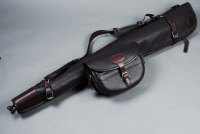 A LEATHER DOUBLE GUN SLIP fleece lined, with double straps, with matching leather cartridge bag with canvas strap (2) |