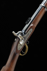 PARKER HALE A .577 REPRODUCTION 1861 ENFIELD PERCUSSION CARBINE, NO. 1352 23-inch barrel with bayonet bar, full length stock with two barrel band, colour-hardened block and hammer, brass trigger guard and butt plate, 14-inch pull, 7lb. 4oz., black powder proof |