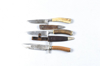 THREE STAG-HANDLED HUNTING KNIVES