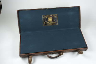with compartments blocked for 28-inch barrels, the lid with padded folding flap