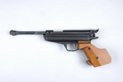 FEINWERKBAU A .177 MODEL 80 TARGET AIR PISTOL, NO. 220908 7 1/2-inch barrel, side lever and sliding breech, adjustable rear sight, walnut anatomical grip, retaining much original finish overall, in its maker's carton with barrel weight, etc |