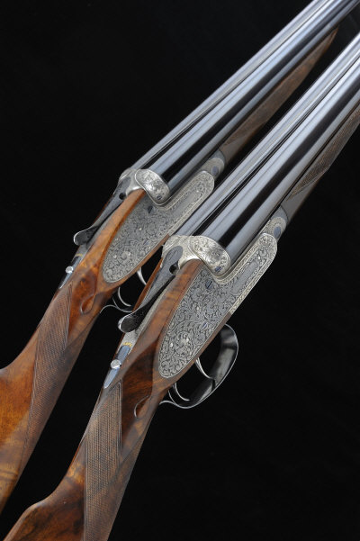 A FINE PAIR OF KELL-ENGRAVED 12-BORE SELF-OPENING SIDELOCK EJECTOR GUNS, NOS. 25256/7