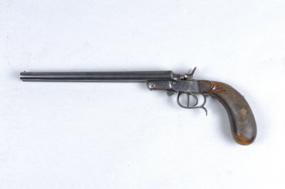 A BELGIAN .410 DOUBLE-BARREL SHOT PISTOL