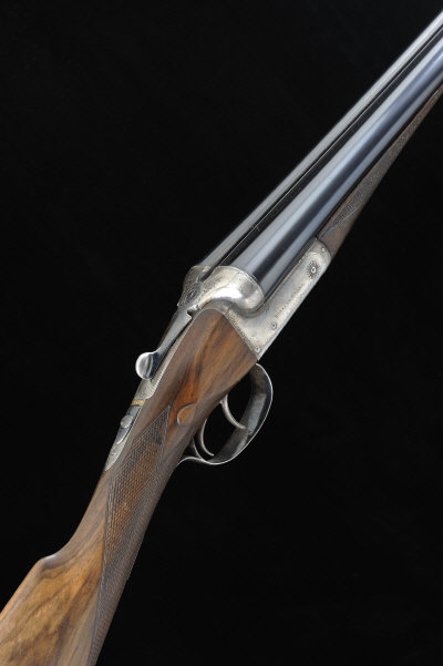 WILLIAM EVANS A 12-BORE BOXLOCK EJECTOR GUN, NO. 12975 28-inch barrels with 2 1/2-inch chambers, about 1/4 choke borings, doll's head extension, the frame and top lever with border engraving and retaining some original hardening colour, 14 1/2-inch figured stock, 6lb. 4oz., nitro proof S2 |