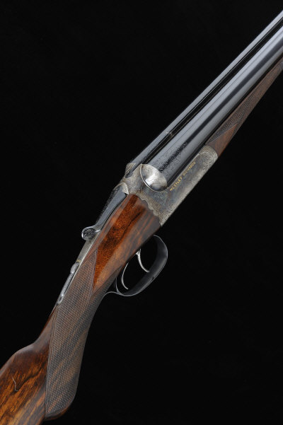 WESTLEY RICHARDS A 12-BORE HAND DETACHABLE BOXLOCK EJECTOR GUN, NO. 18608 28-inch barrels with 2 1/2-inch chambers, about 1/4 and full choke borings, doll's head extension, engraved breeches, the frame, hinged base plate and patent top lever with bold scroll engraving surrounding scenes of game birds, retaining some original hardening colour, the maker's name signed in gold, 14 1/4-inch highly figured stock with semi pistol grip, 5lb. 14oz., nitro re-proof, ribs loose, right hand ejector spring broken and defective, in its leather case S2 |