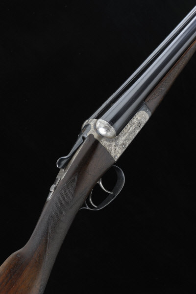 WEBLEY & SCOTT A 12-BORE BOXLOCK EJECTOR GUN, NO. 126942 26-inch barrels with 2 3/4-inch chambers, about 1/4 and full choke borings, the frame and top lever with scroll engraving and retaining traces of original hardening colour, 14 1/4-inch figured stock, 6lb. 4oz., nitro proof S2 |