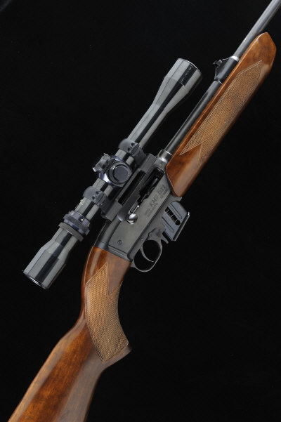PPK A .22 WMR MODEL KMS611 SELF-LOADING SPORTING RIFLE, NO. 020098 20 1/2-inch barrel, the receiver mounted with a Weaver variable power telescopic sight, detachable box magazine, 14 1/2-inch stock with pistol grip and maker's butt plate, 6lb. 11oz., nitro proof S1 |