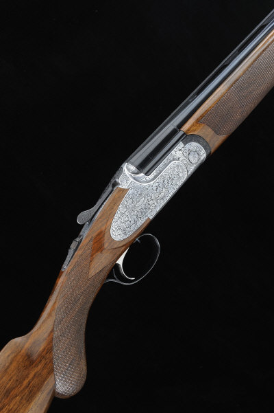 26 1/2-inch monobloc barrels with 2 3/4-inch chambers, with interchangeable choke tubes, machined ventilated rib, the frame, top lever and side plates with foliate scroll engraving, selective single trigger, 14-inch well figured stock with semi pistol grip and rubber recoil pad, 5lb. 10oz., Italian nitro proof, in its maker's case with spare chokes, etc