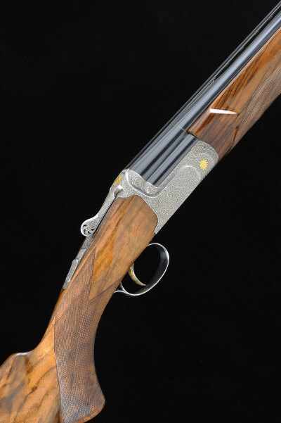 PERAZZI A 12-BORE MX8 MODEL SINGLE TRIGGER OVER AND UNDER EJECTOR GUN, NO. 56853MAP 29-inch monobloc barrels with 2 3/4-inch chambers, with Teague interchangeable choke tubes, machined ventilated rib with centre bead, the frame, top lever and detachable trigger block with fine tight scroll engraving with gold floral highlights, retaining all of its original bright finish, the action base engraved with an eagle and signed by the engraver, "ABig.", 15-inch highly figured stock with pistol grip and rubber recoil pad including 1/2-inch ebonite extension, 8lb. 4oz., Italian nitro proof, in its maker's plastic case S2 The proof code dates the gun to 1981. |