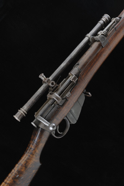 L.S.A. CO. LTD A .303 NO.1 MARK III BOLT-ACTION SNIPER RIFLE, NO. M52264 25 1/4-inch barrel with adjustable tangent rear sight, the receiver with Whitehead scope spaces and Winchester A5 telescopic sight, magazine cut-off and long range dial studs, the butt socket dated 1915, 12 3/4-inch figured stock with brass butt plate, 9lb. 12oz., nitro proof S1 |